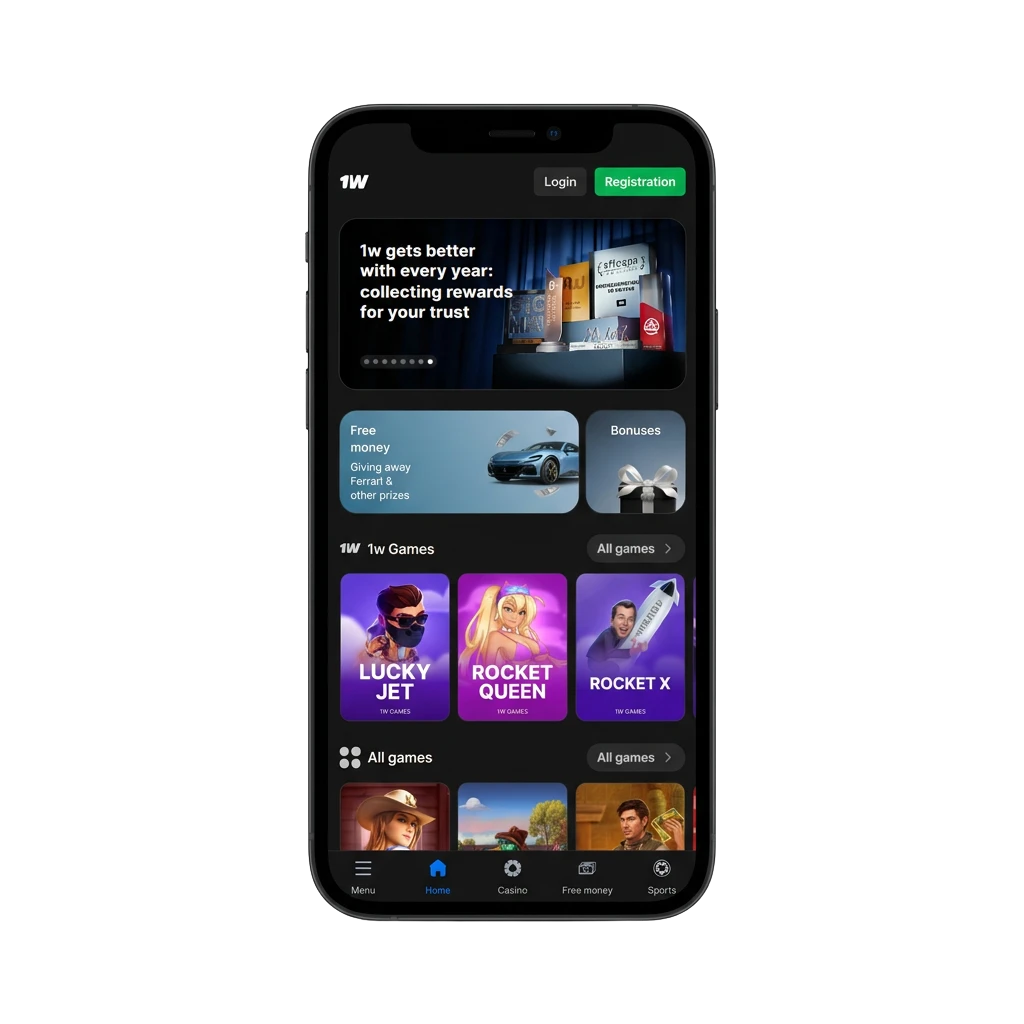 1W mobiililiides on loodud selguse ja kiiruse silmas pidades: peamenüü, spordi- ja kasiinosektsioon ning konto haldus on kõik hõlpsasti leitavad. Navigeerimine on intuitiivne nii esmakordsele kasutajale kui ka kogenud mängijale, olenemata seadme ekraani suurusest.